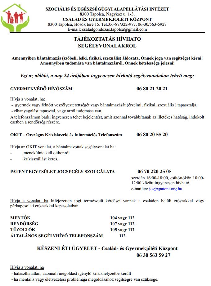 Áldozatként vagy az áldozat segítőjeként az alábbi elérhetőségeken kérhet segítséget!
